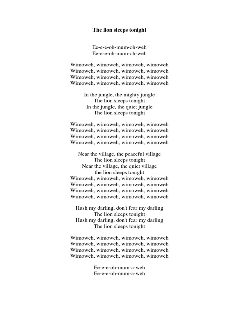 The Lion Sleeps Tonight Lyrics Pdf
