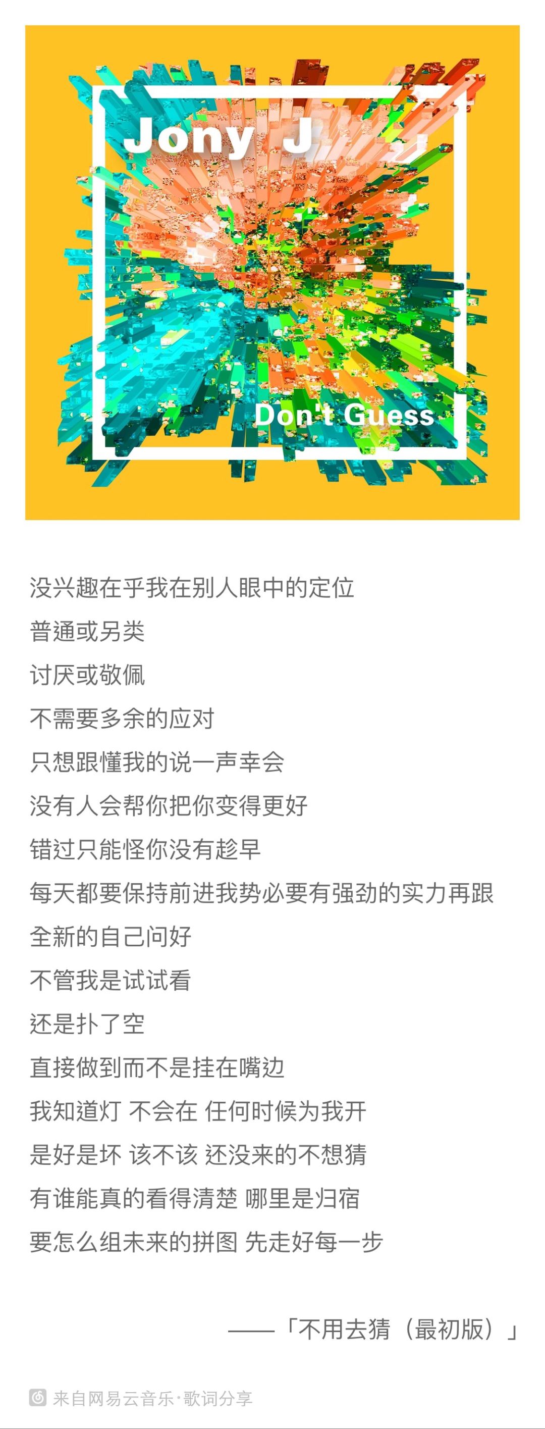 不用去猜 歌詞 Jony J Mymusic 懂你想聽的